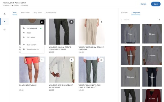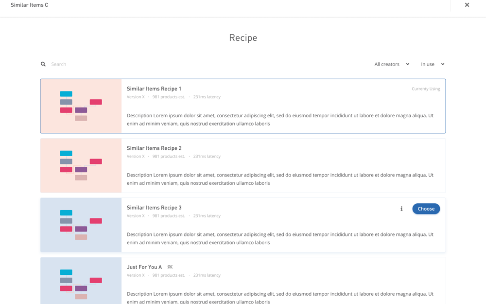 Before the new CEC, merchandisers had limited control over the algorithms behind recommendation widgets, often relying on a single, universal recipe. With our contextual rules, merchandisers gained some control over which recipe applied per context, but we wanted more: to let users see inside the “glass box.”