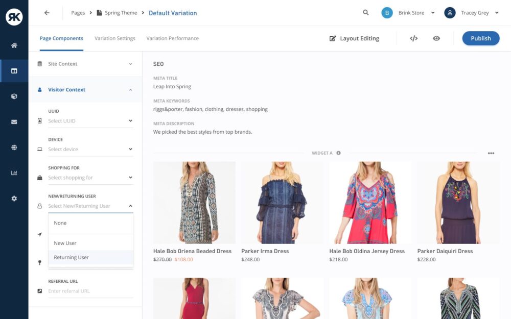 While exploring options for the page editor, I realized our solution needed to differentiate itself from common page builders. Instead of aiming to perfect the look and feel—which plenty of market tools did—we focused on what made us unique: personalization. Our page editor prioritized showcasing the personalization outcomes and allowing merchandisers to see end results in context. This approach became especially valuable with the introduction of recommendation widgets, where avoiding duplicated content across multiple widgets was critical.